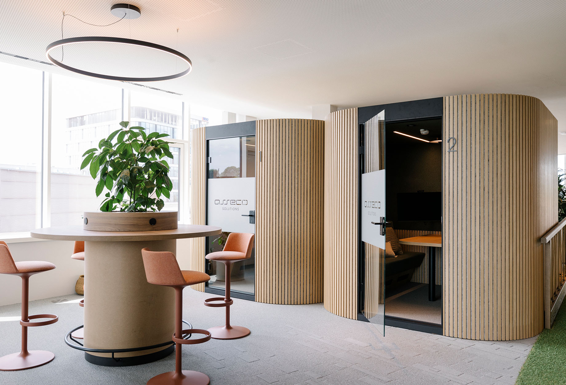 Gemeinsam mit uns und Meindl Cavar Concepts entwickelte Asseco so einen Ort, der die eigene Unternehmenskultur „in den Raum bringt“. Ein Büro, das nicht zurück in alte Muster zwingt, sondern ein neues, nutzenstiftendes Angebot schafft. Der Effekt zeigt sich Schritt für Schritt: Die Fläche füllt sich wieder – die Mitarbeitenden erkennen schrittweise die Vorteile: Austausch, Inspiration, Nähe, Energie.