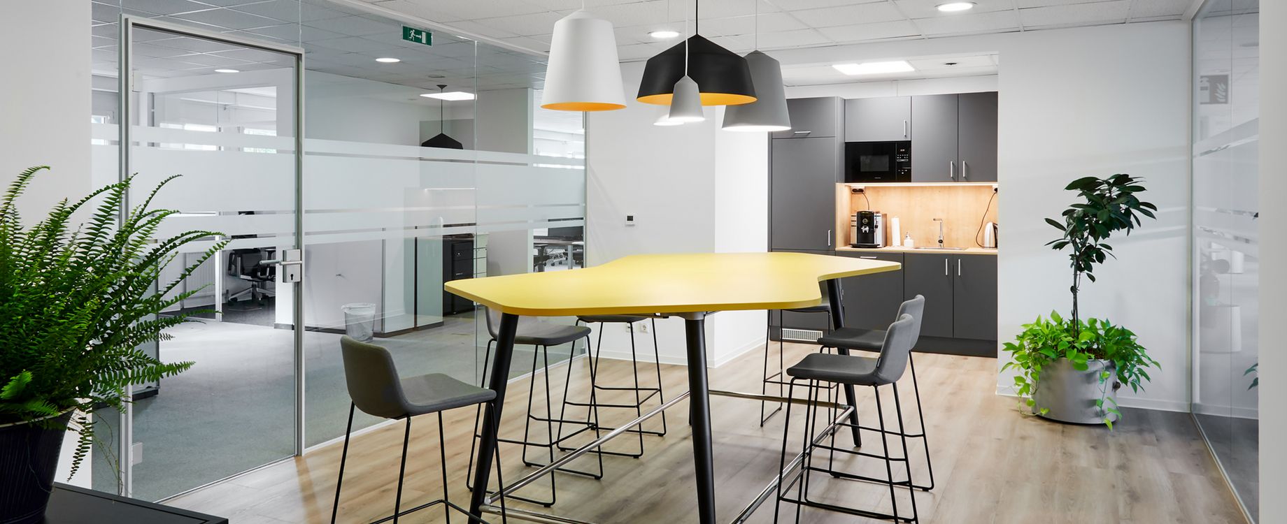 Eine der neuen Perspektiven durch die Pandemie war, dass sich Konica Minolta die Erfahrungen des Arbeitens von zuhause aus zunutze machen konnte. Das Homeoffice war für viele zuvor undenkbar gewesen, ist mittlerweile aber sogar ein unverzichtbares Angebot an Arbeitnehmer:innen. Das hat nicht nur Auswirkungen auf die Arbeitskultur im Allgemeinen, es verändert auch die Anforderungen an die Bürofläche selbst. Wenn sich die Auslastung der Fläche verkleinert, kann der Raum anders gedacht werden: weniger Standard-Arbeitsplätze, mehr unterschiedliche Arbeitsangebote. Oder anders gesagt: man kann aus weniger mehr machen.
